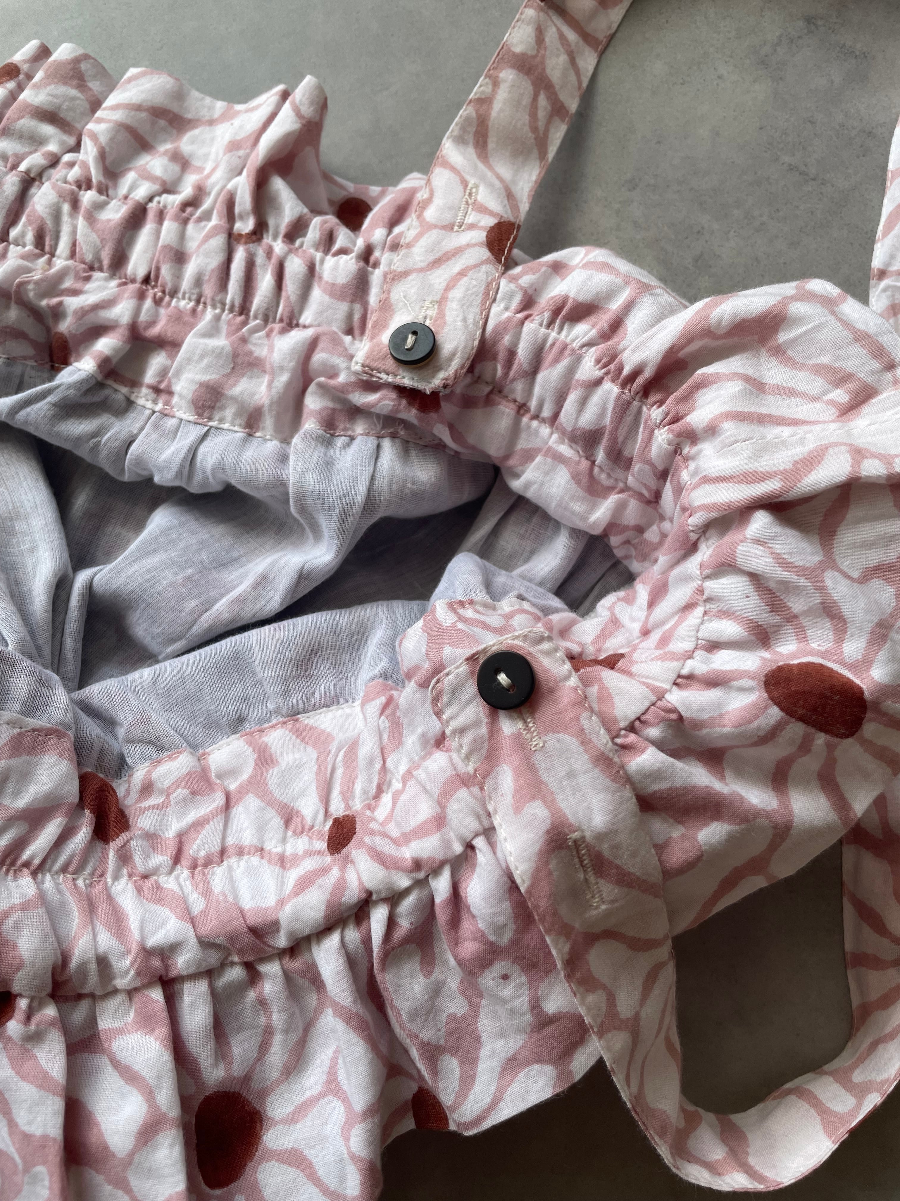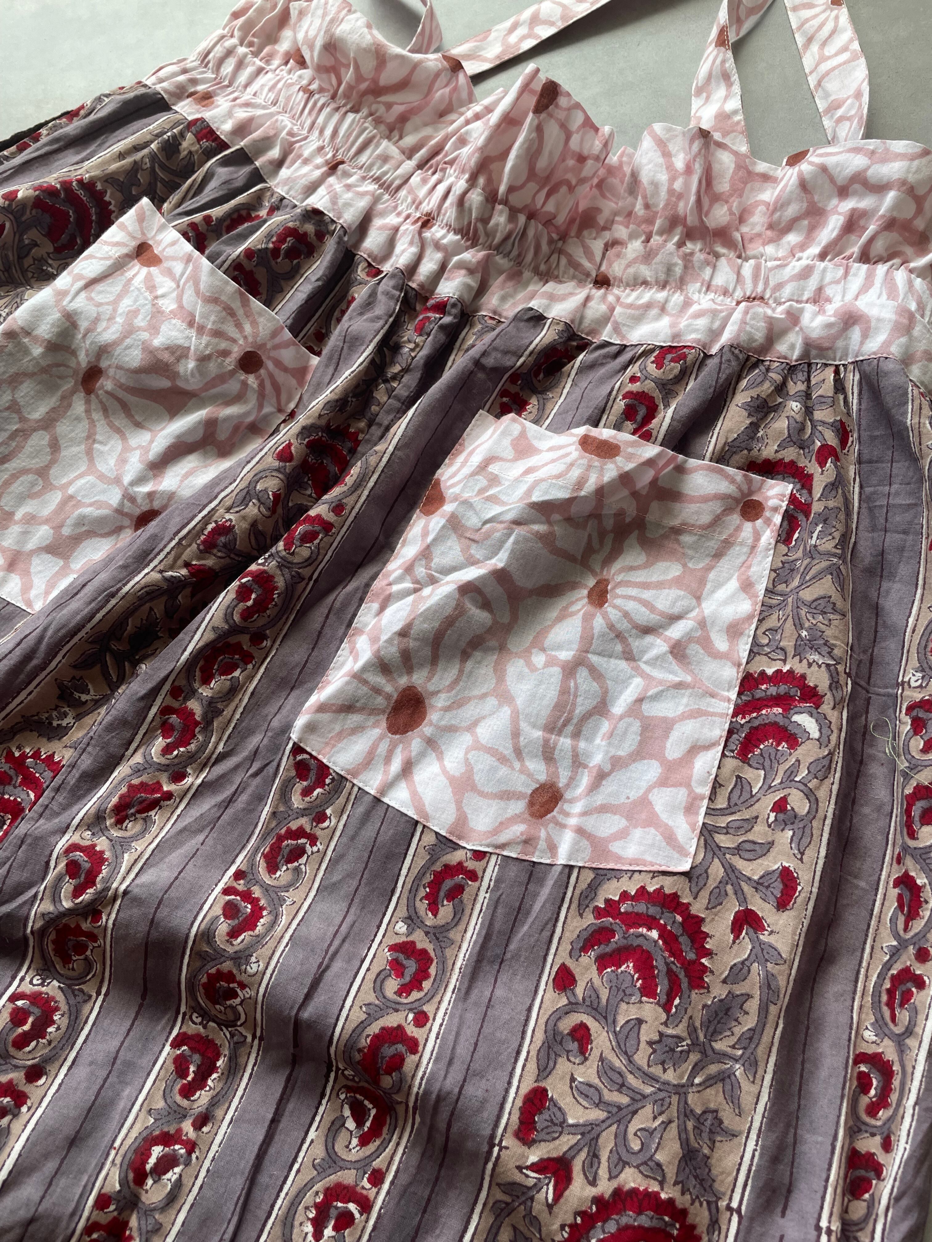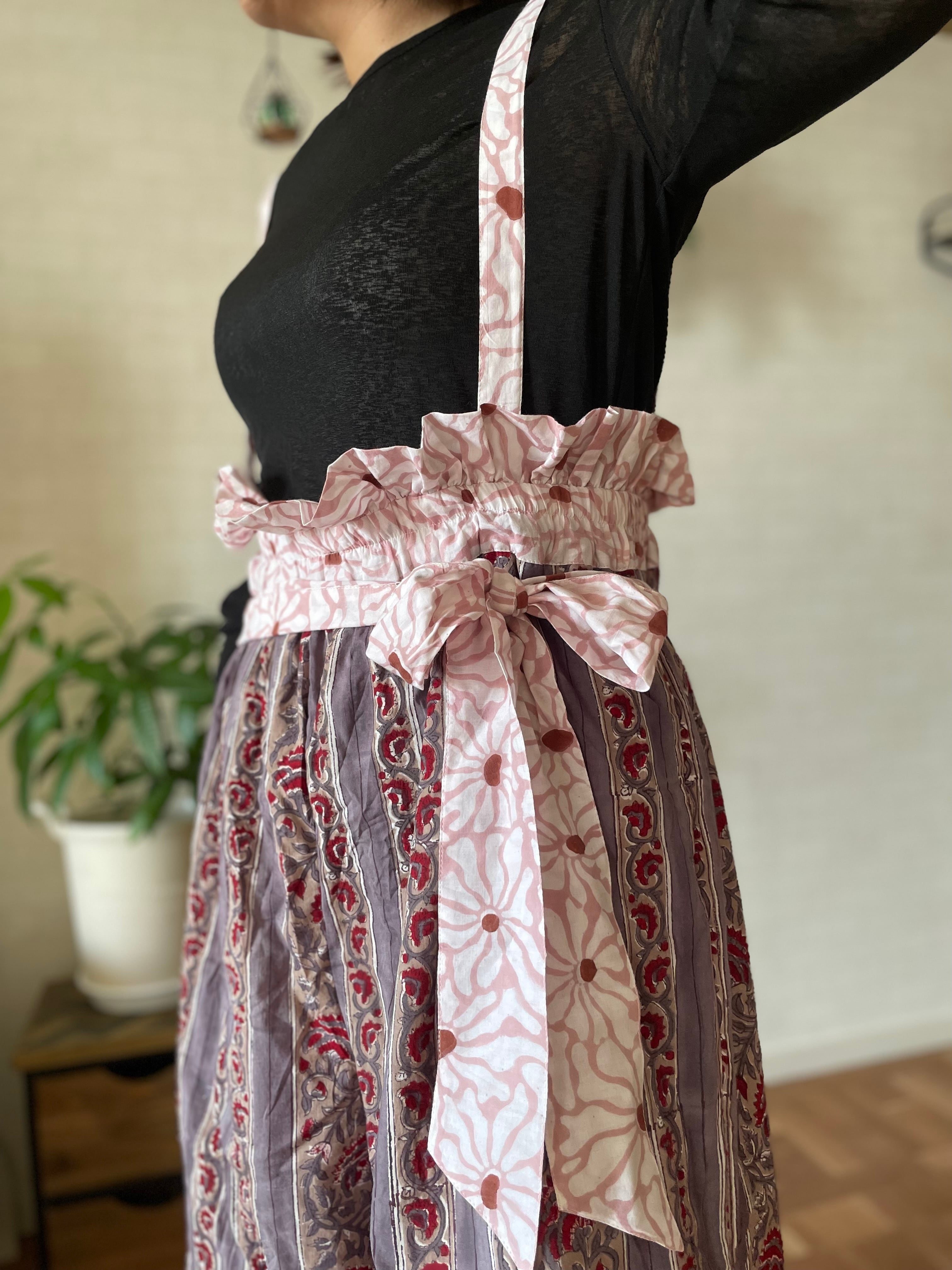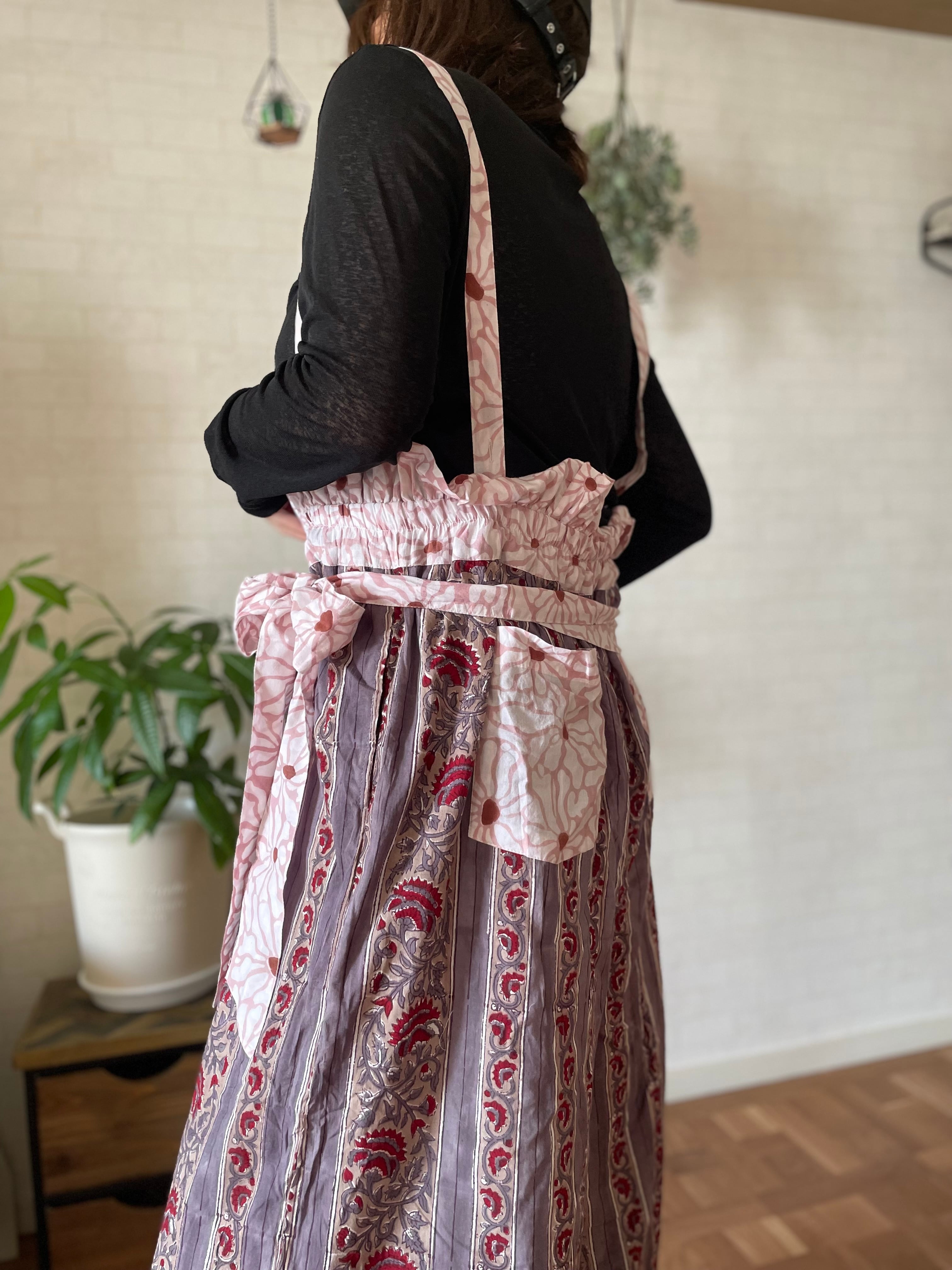 インドの伝統工芸であるブロックプリントは職人さんが一つ一つ手作業でスタンプを押して作られています。カラーやプリントの模様はそのたびに少しずつ異なるので一つとして同じものはありません。一期一会のワンピースとの出会いです。