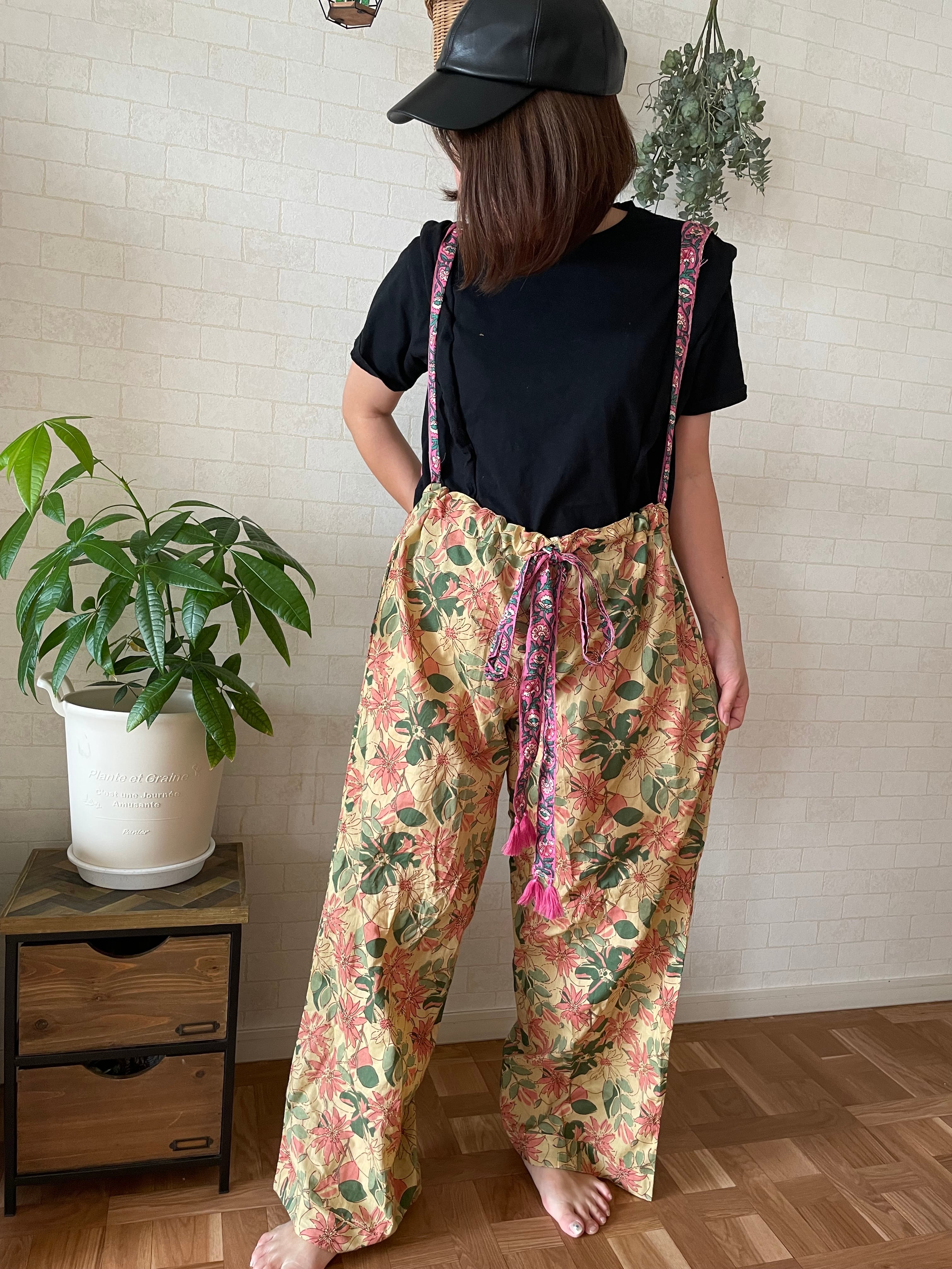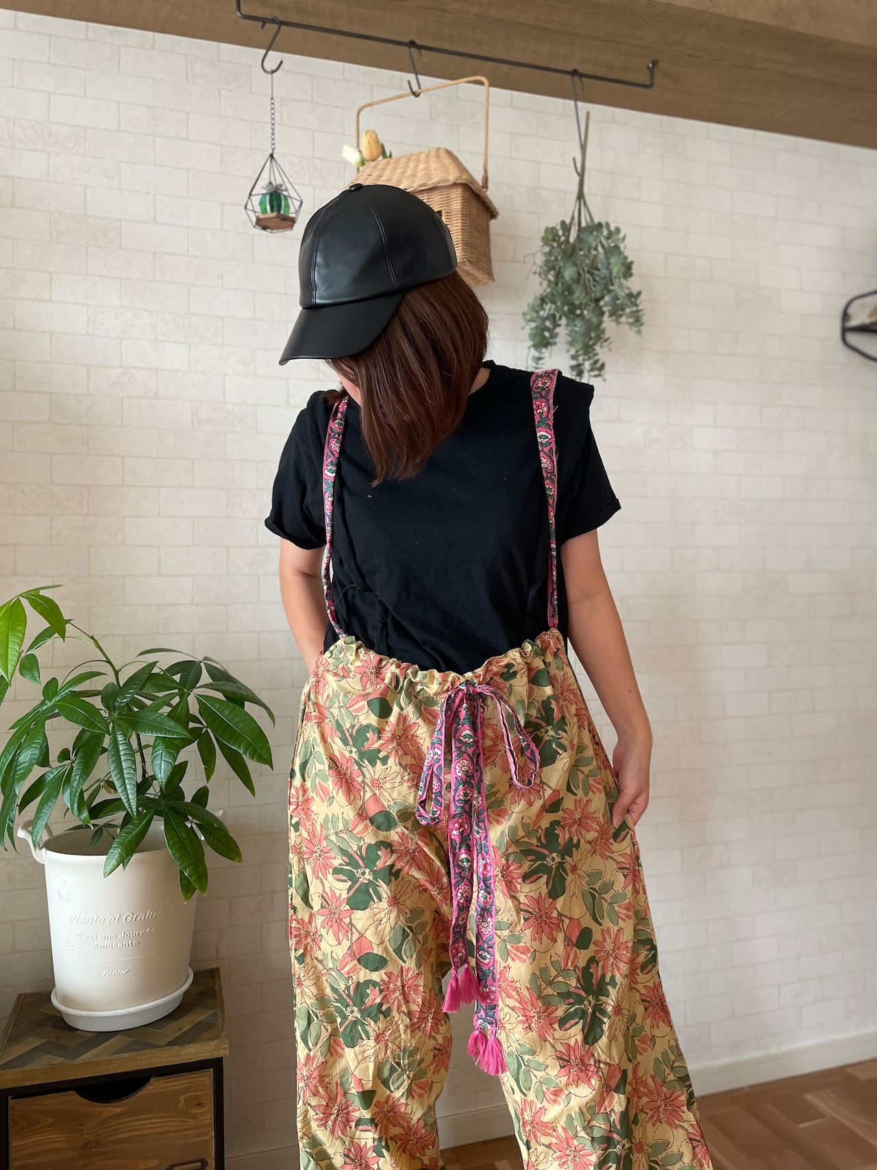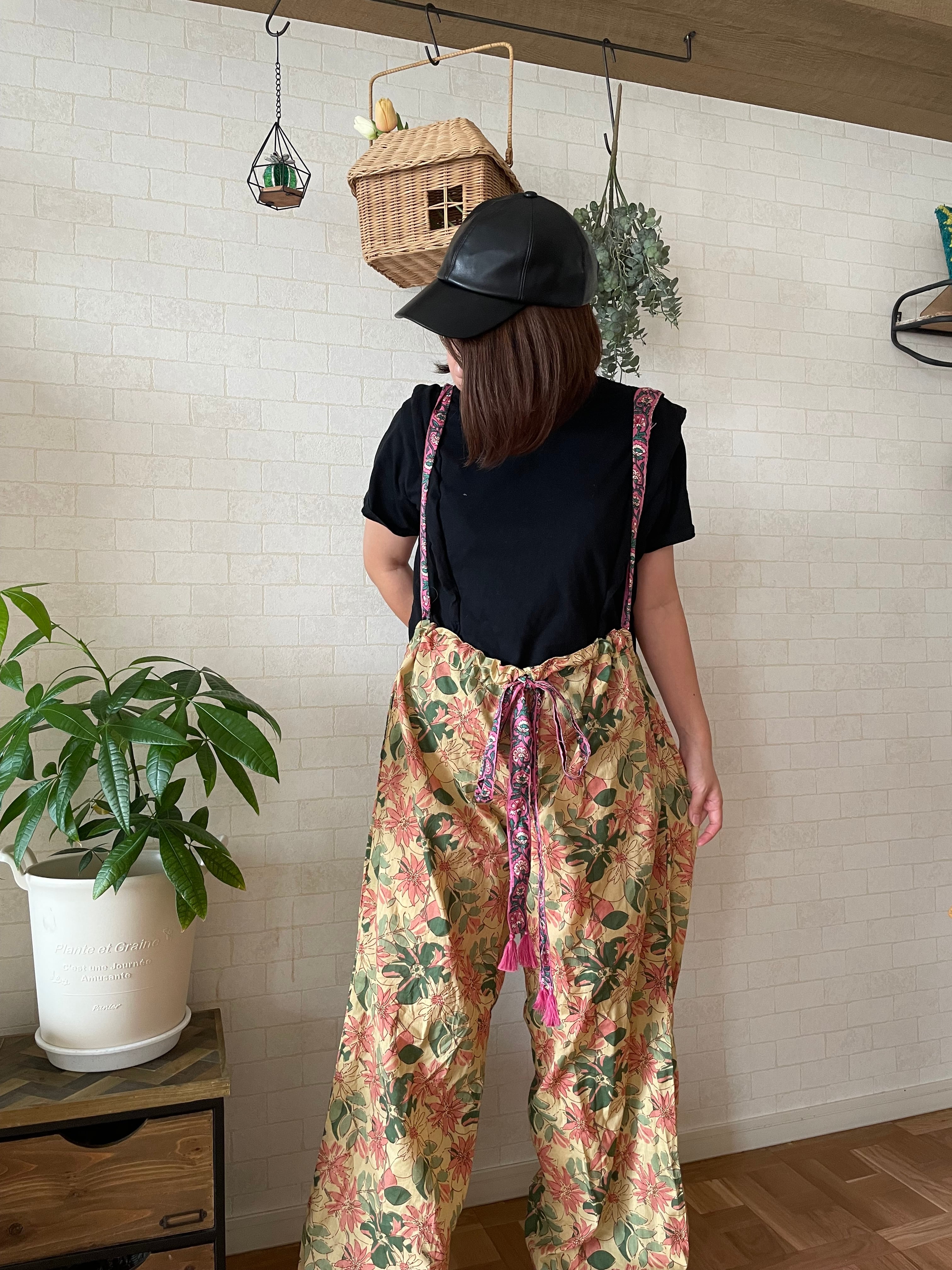 紐を2重に通したり、紐を変えてサロペットではなく普通のパンツとしても着用出来ます。