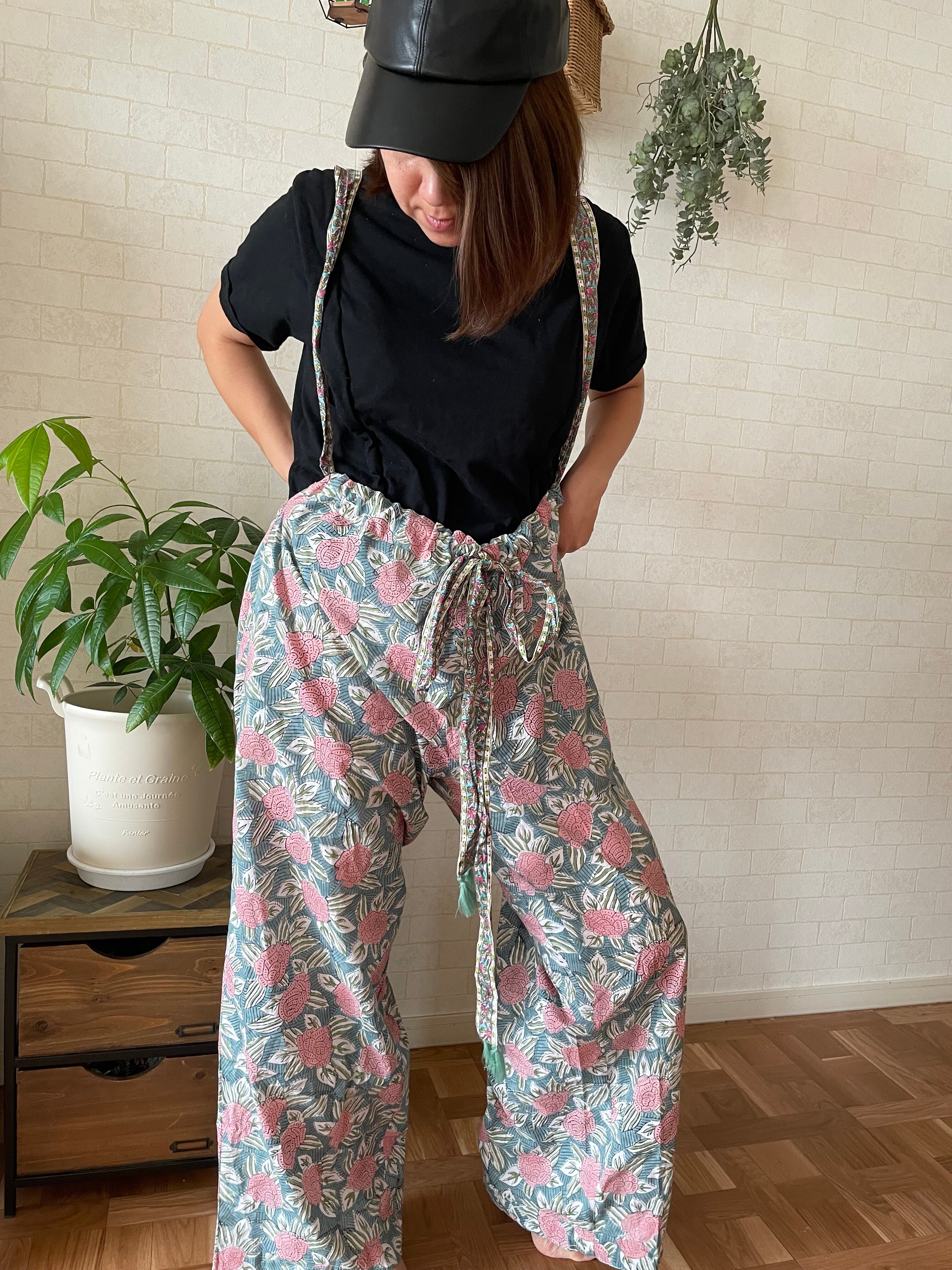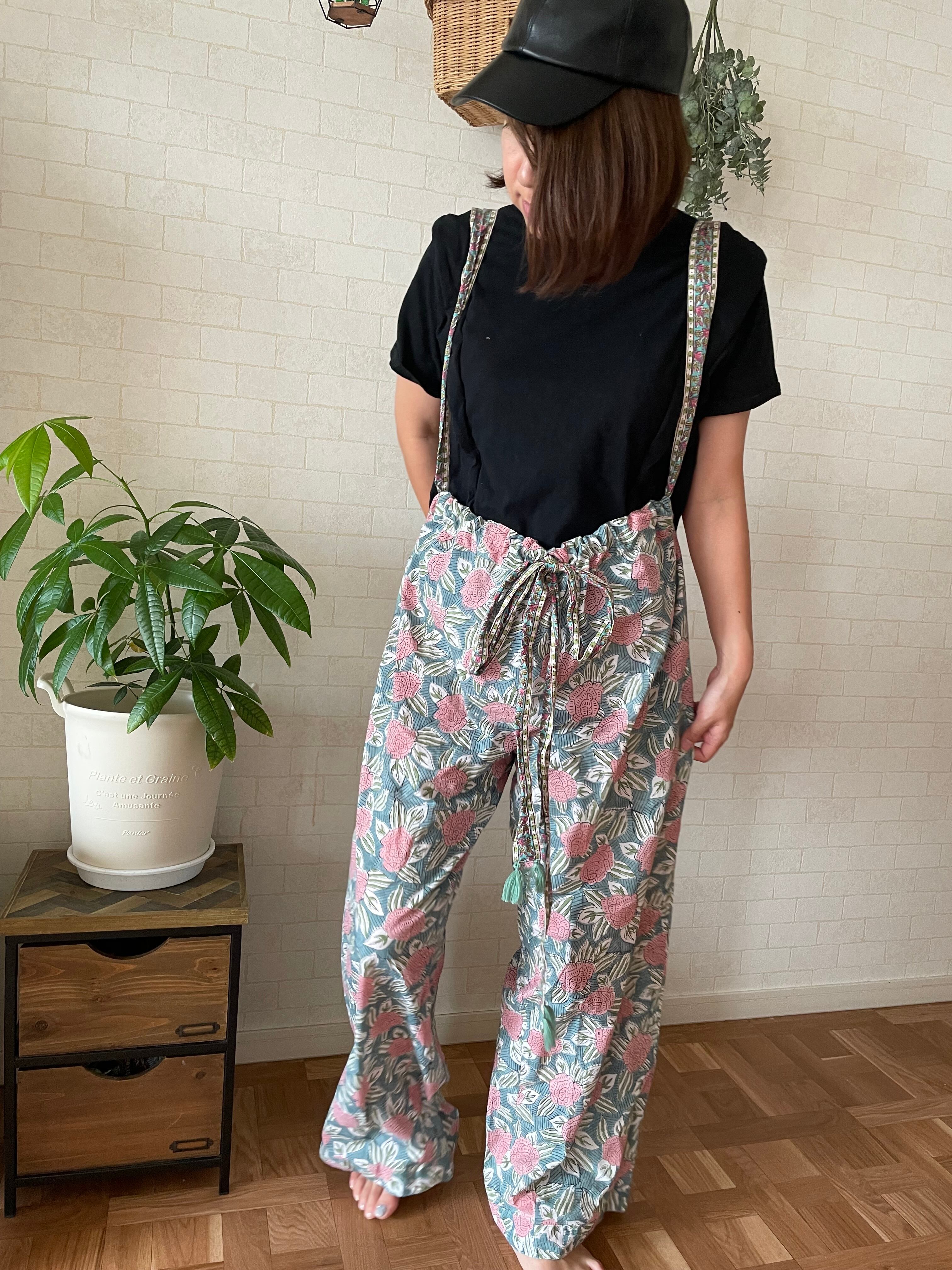 紐を2重に通したり、紐を変えてサロペットではなく普通のパンツとしても着用出来ます。