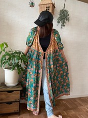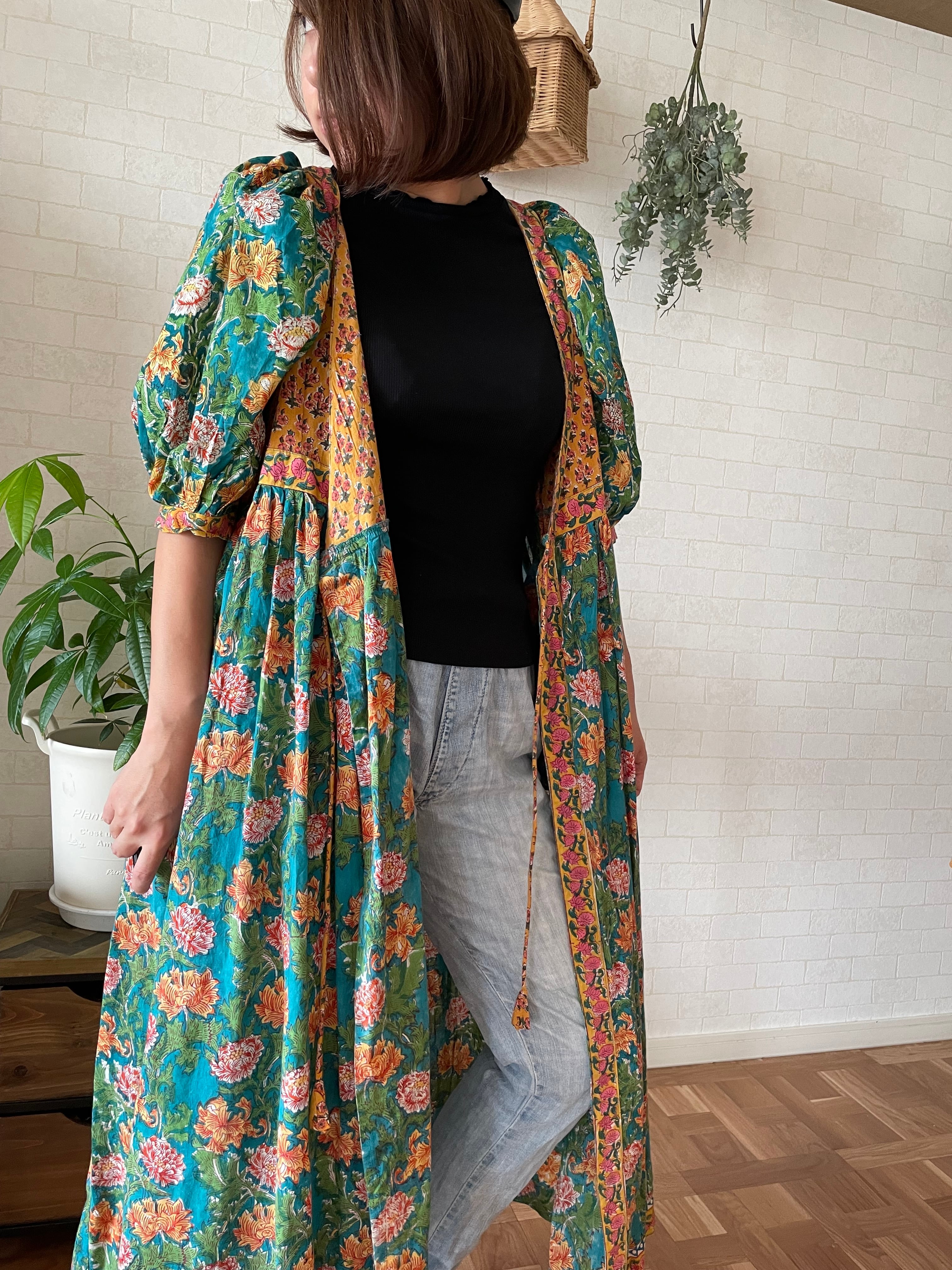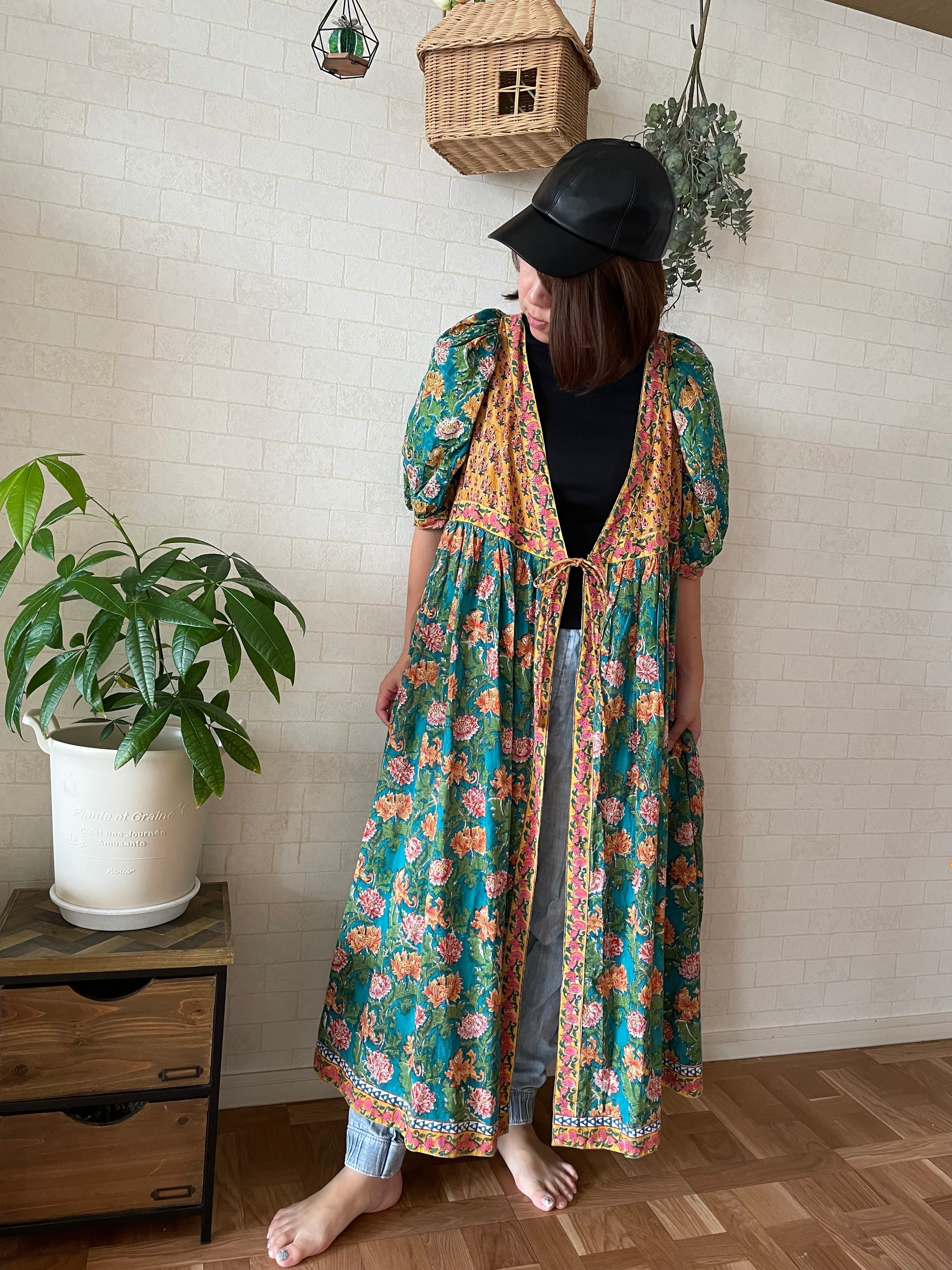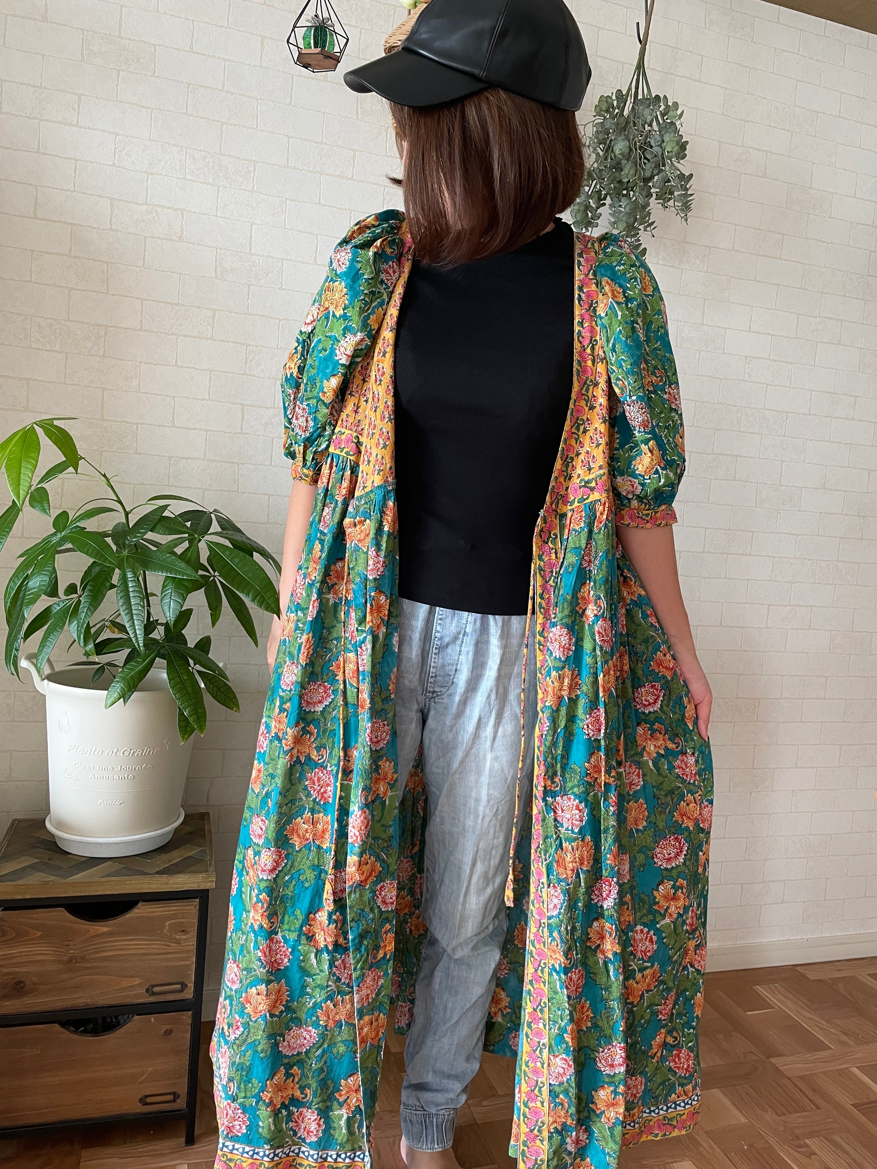 インドの伝統工芸であるブロックプリントは職人さんが一つ一つ手作業でスタンプを押して作られています。カラーやプリントの模様はそのたびに少しずつ異なるので一つとして同じものはありません。一期一会のワンピースとの出会いです。